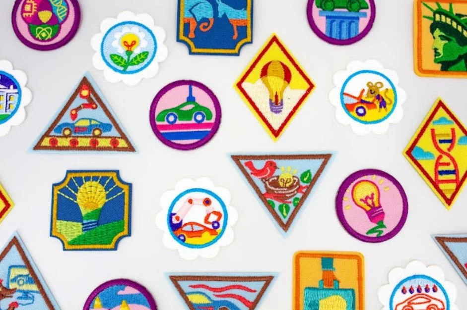 I do not recall too many activities that my troop did together, I couldn’t name all of the other girls who were in my troop, nor do I remember exactly when I quit Girl Scouts. But what I do remember is the badges. There was this little booklet that had pictures of all the badges you could earn. Next to each badge was the list of things you had to accomplish to earn the badge. Nothing was more exciting to me than the possibility of earning a new badge. They were so colorful and cute and you got to sew them on your sash (or, in my case, beg my mother to sew them on my sash). The whole thing was quite the thrill. To be honest, I never really cared what I was earning the badges for, I just liked receiving them.