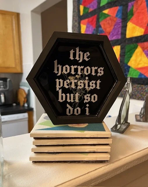 A few weeks ago I came home to a package on my doorstep from one of my best friends. It was a sign that reads, “The horrors persist but so do I”. She knows that 2025 has not been great so far. I placed the sign on the ledge between my kitchen and living room so I can easily see it from the couch. When I am royally pissed off or gut-wrenchingly sad or afraid and angry over the headlines, I glance over at the sign. It doesn’t make anything go away, but it makes me feel a little bit better. It reminds me that even if I haven’t figured out a tangible way to fight back yet, at least I’m not giving up. Persistence is, in a small way, a little bit of resistance.