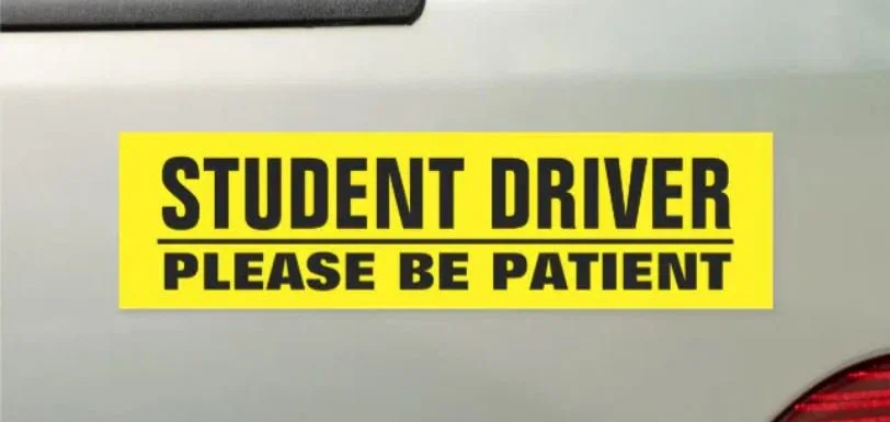In the last year or so I have seen many vehicles with magnets or stickers on them which read, “Student Driver, Please Be Patient”. When I was a student driver, aside from the labels on the car when I took the state mandated six hours of driving lessons, there were no such stickers to put on your car. Even if there were I would not have had such stickers because I do not believe in their message and I will tell you why.